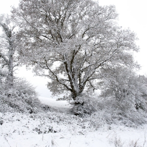 Oak trees in snow