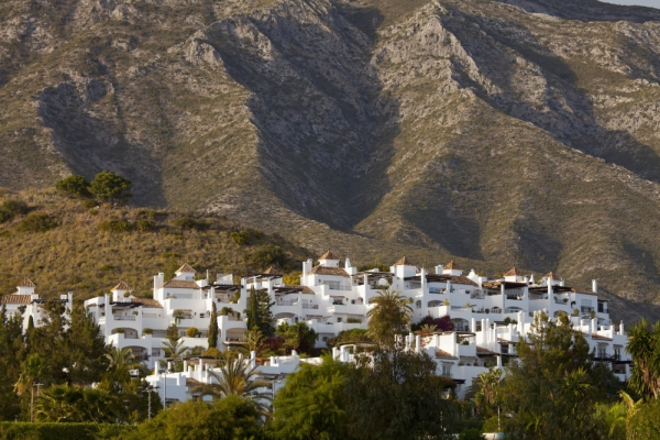 A spanish mountain village nestled at the foot of the Sierra Nevada mountains.