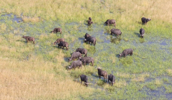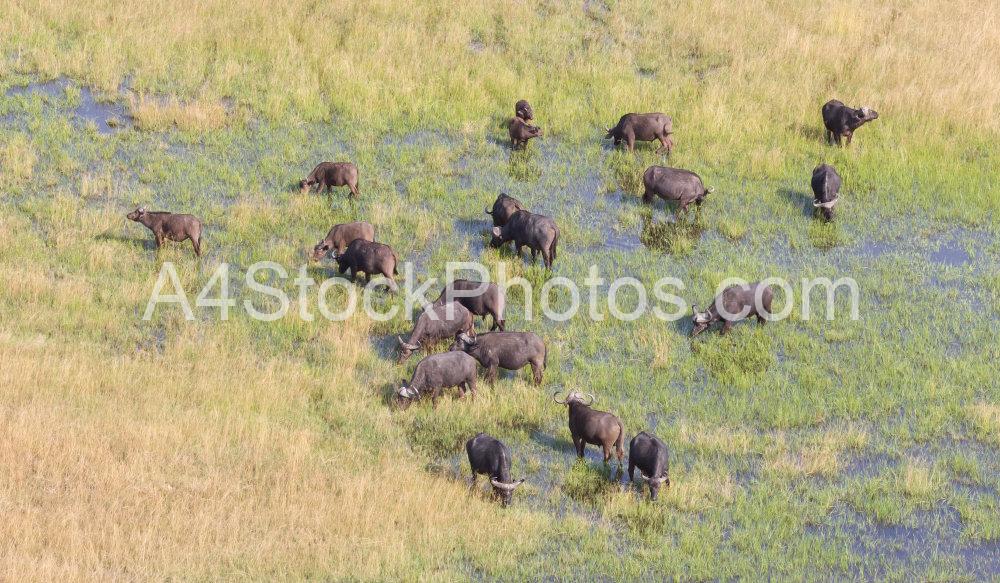 Water buffalo (Bubalus bubalis) in the Okavango delta, Botswana – Aerial shot