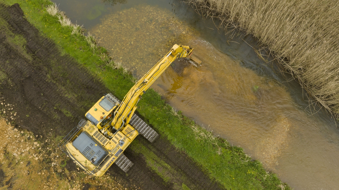Aerial photos, Business & Industry 360 digger A 360 digger placing gravel into a river, seen from above by a drone.Read more